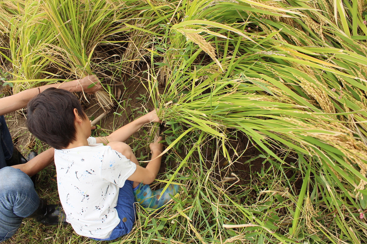 みんなで植えたお米は、秋になったら収穫をして、精米をプレゼント!