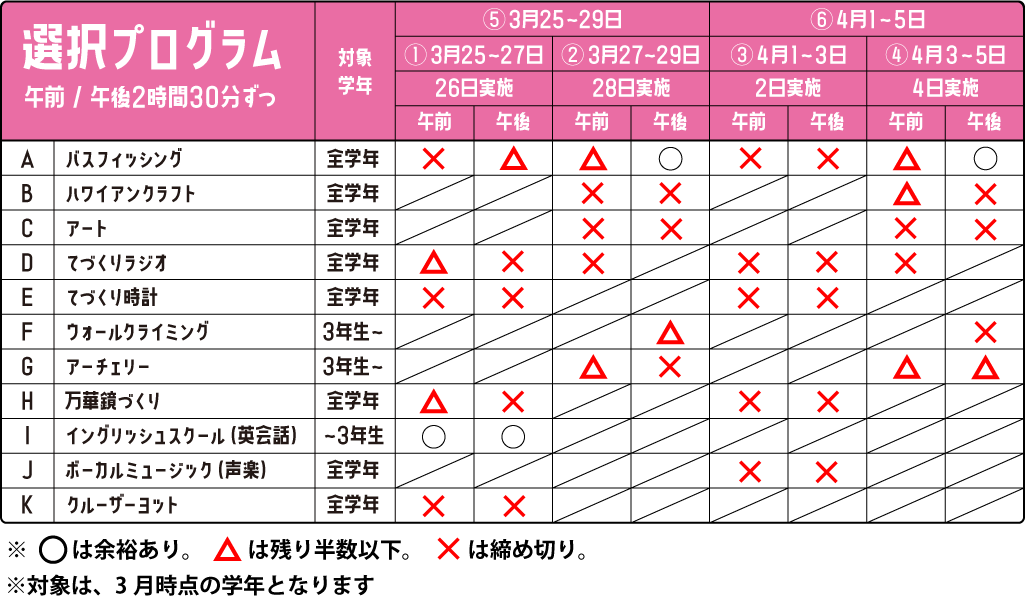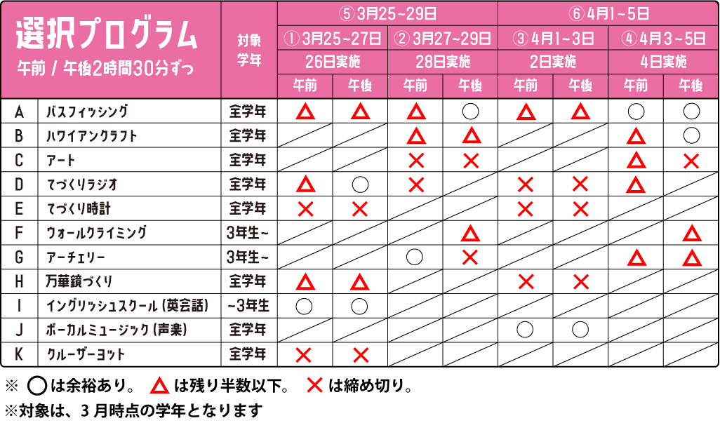 選択プログラム空き状況